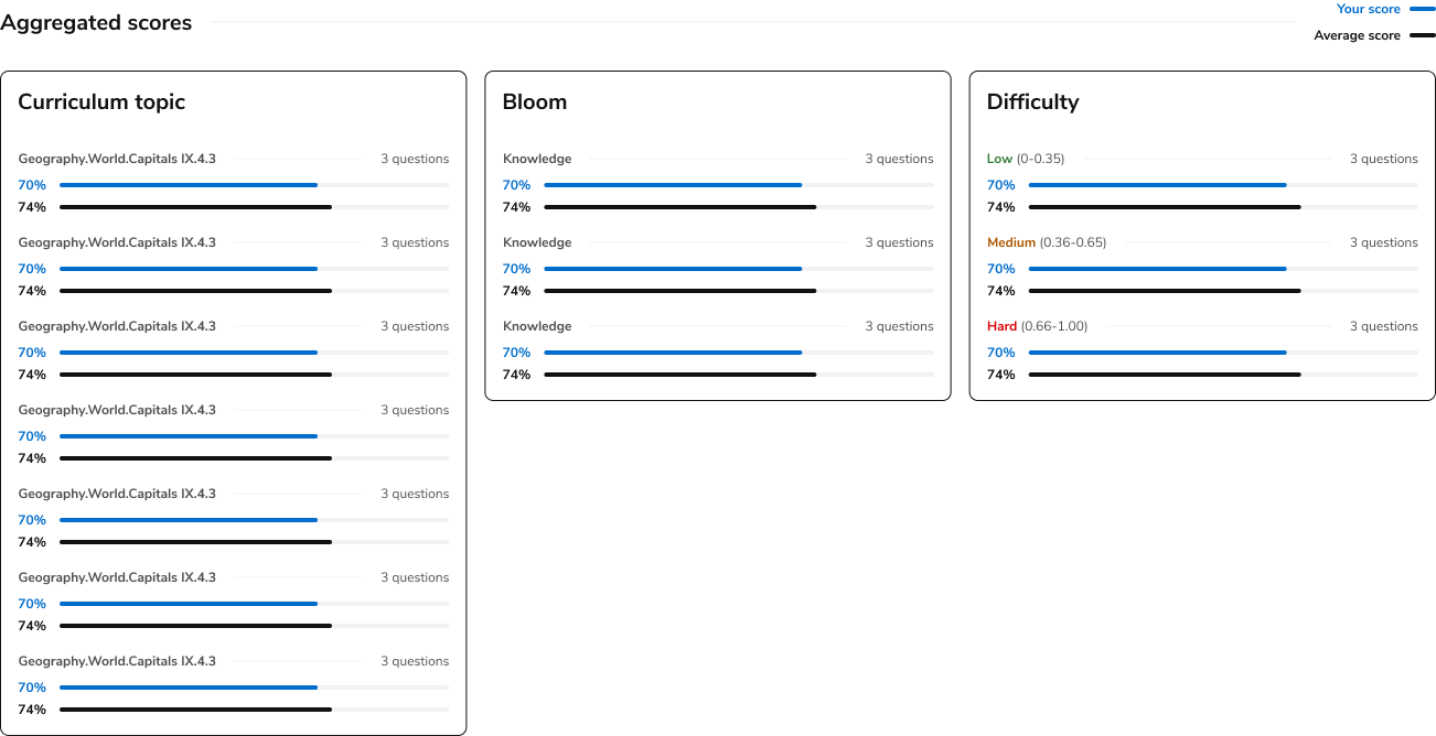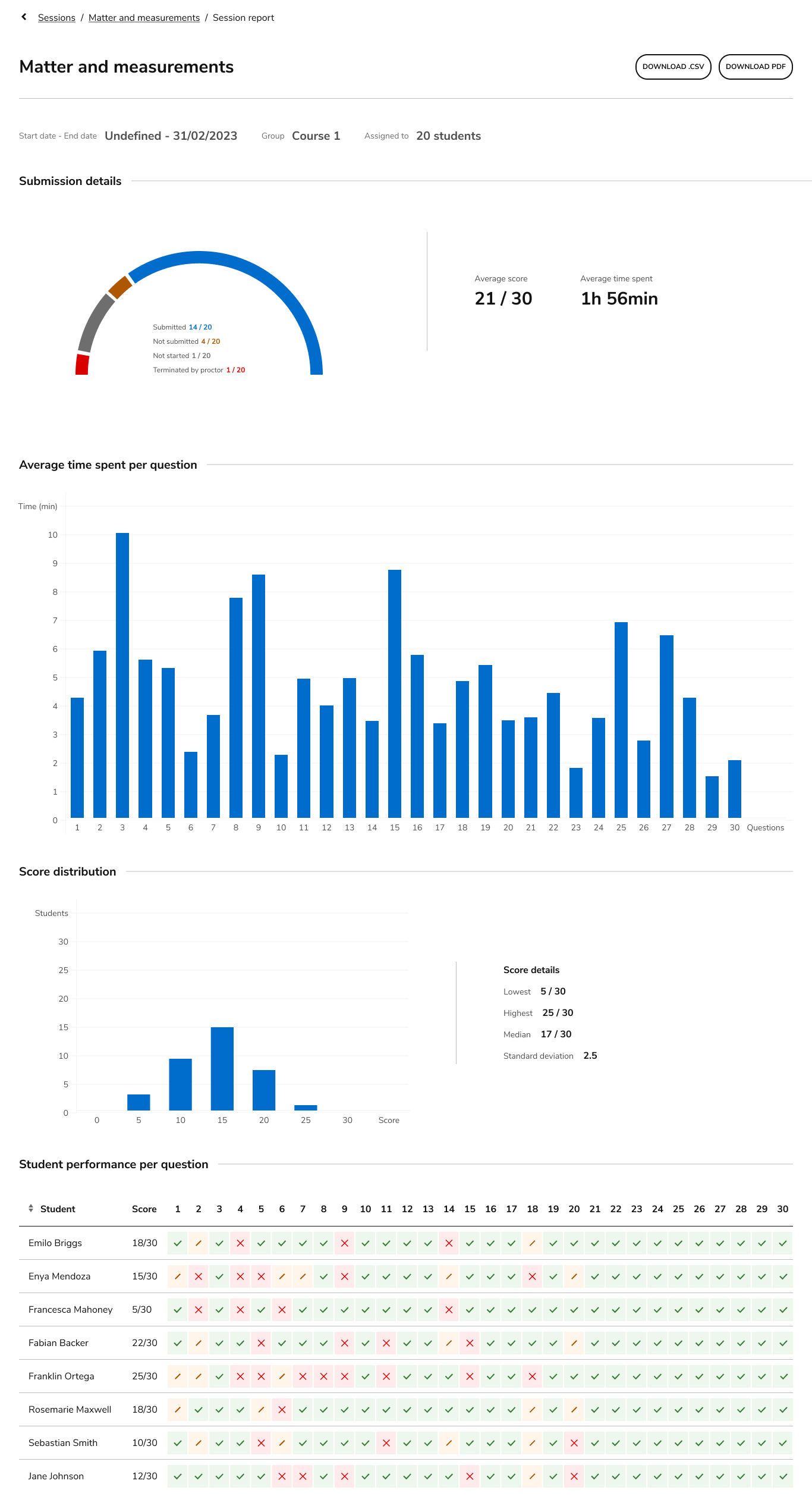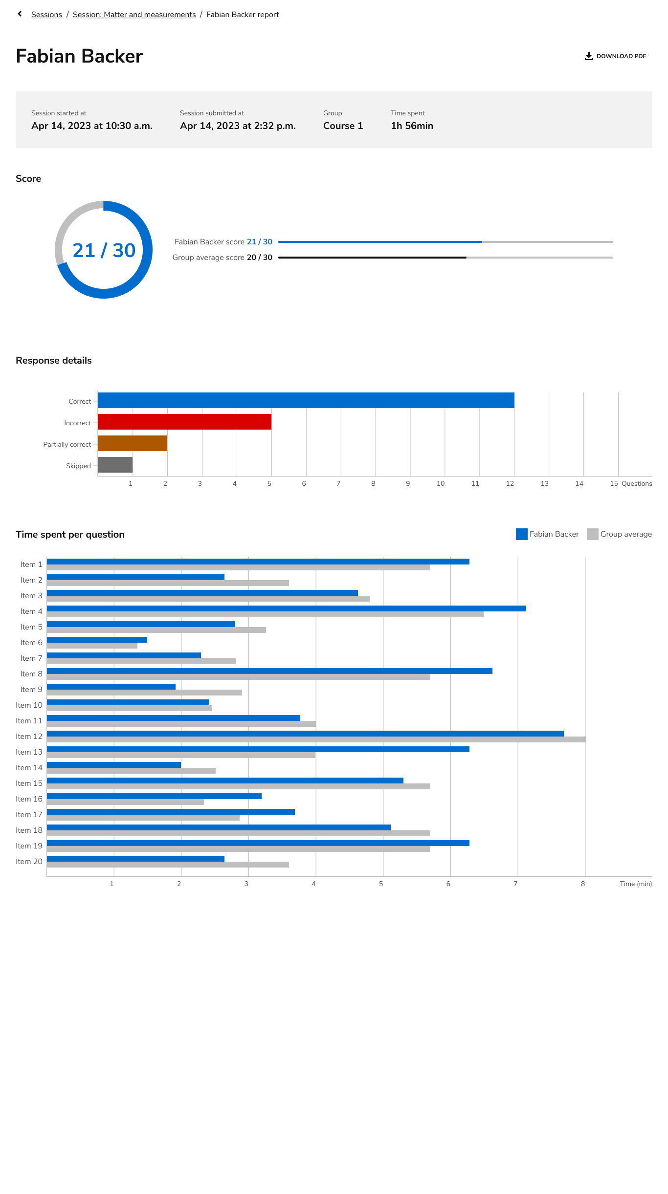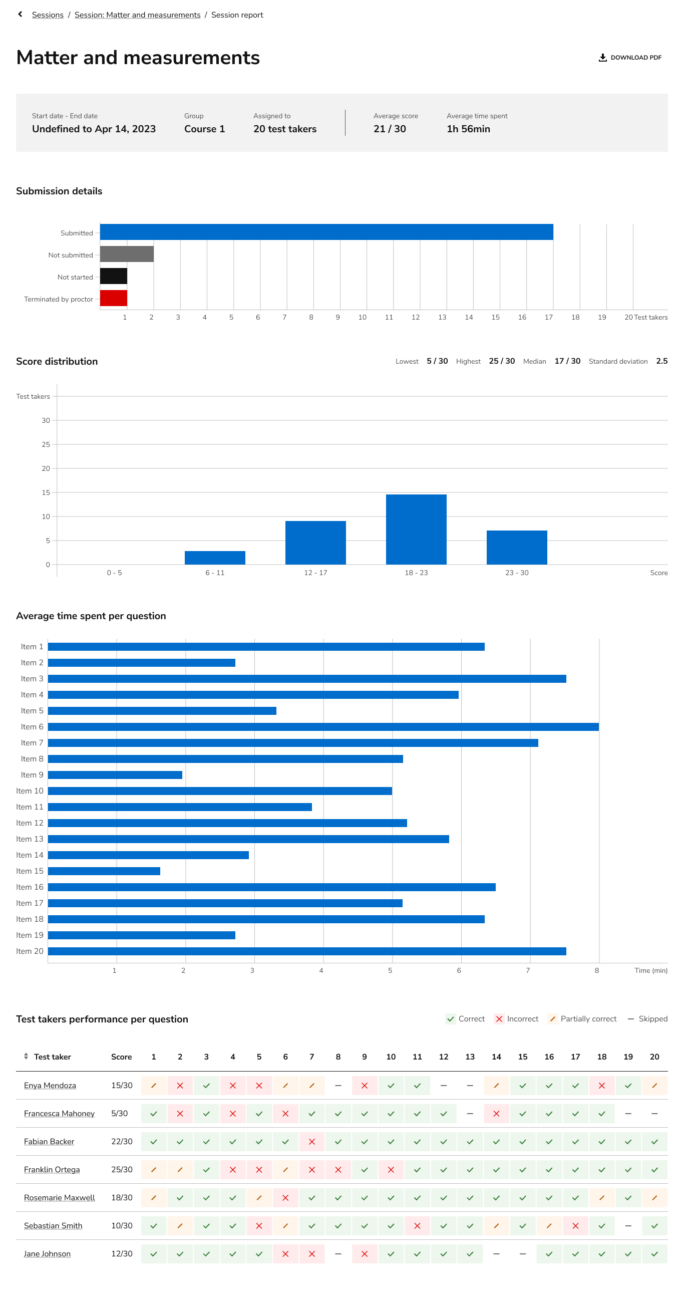 Teachers want a quick idea on how the session went and which questions test takers understood and which questions caused difficulties.